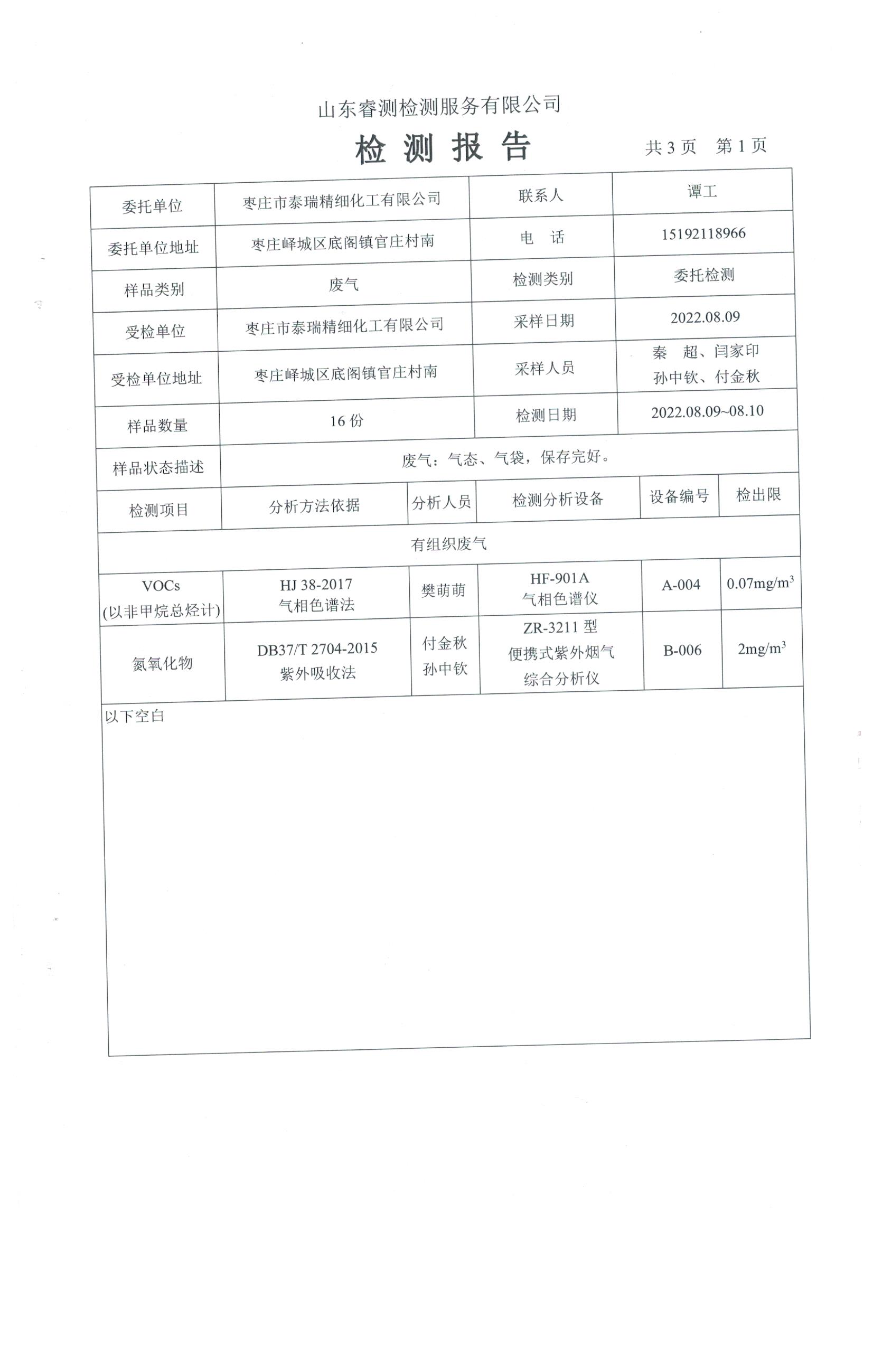 2022年9月份環(huán)保檢測(cè)報(bào)告