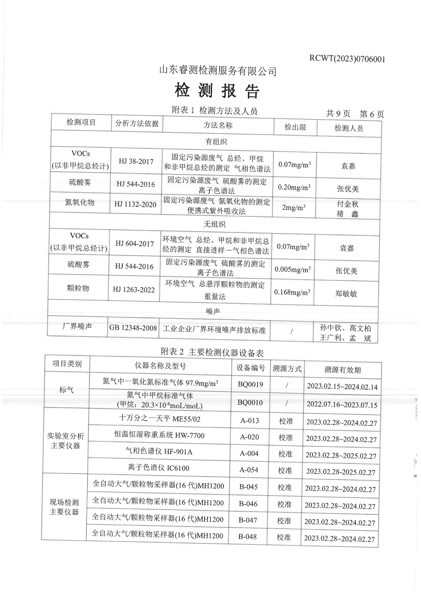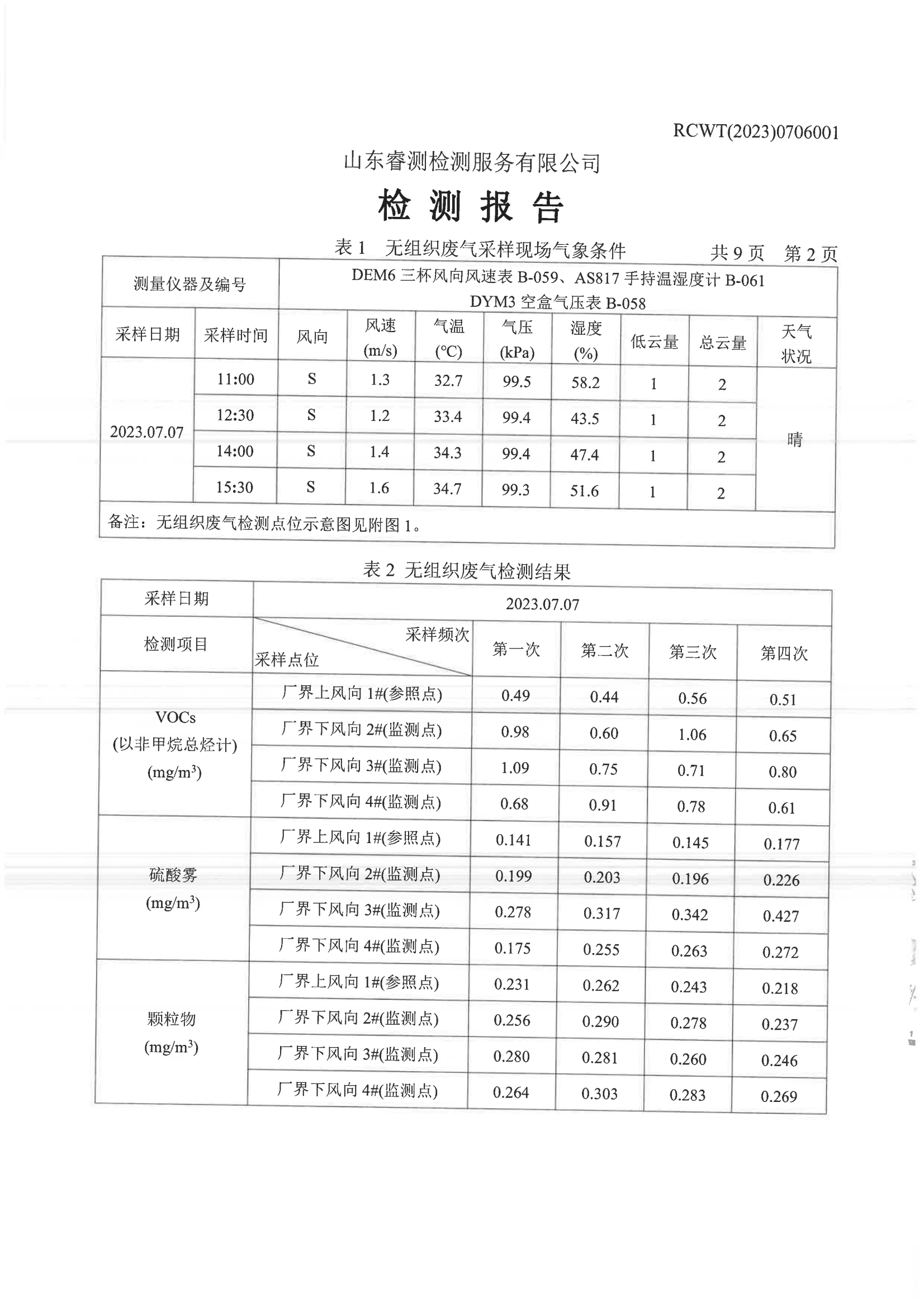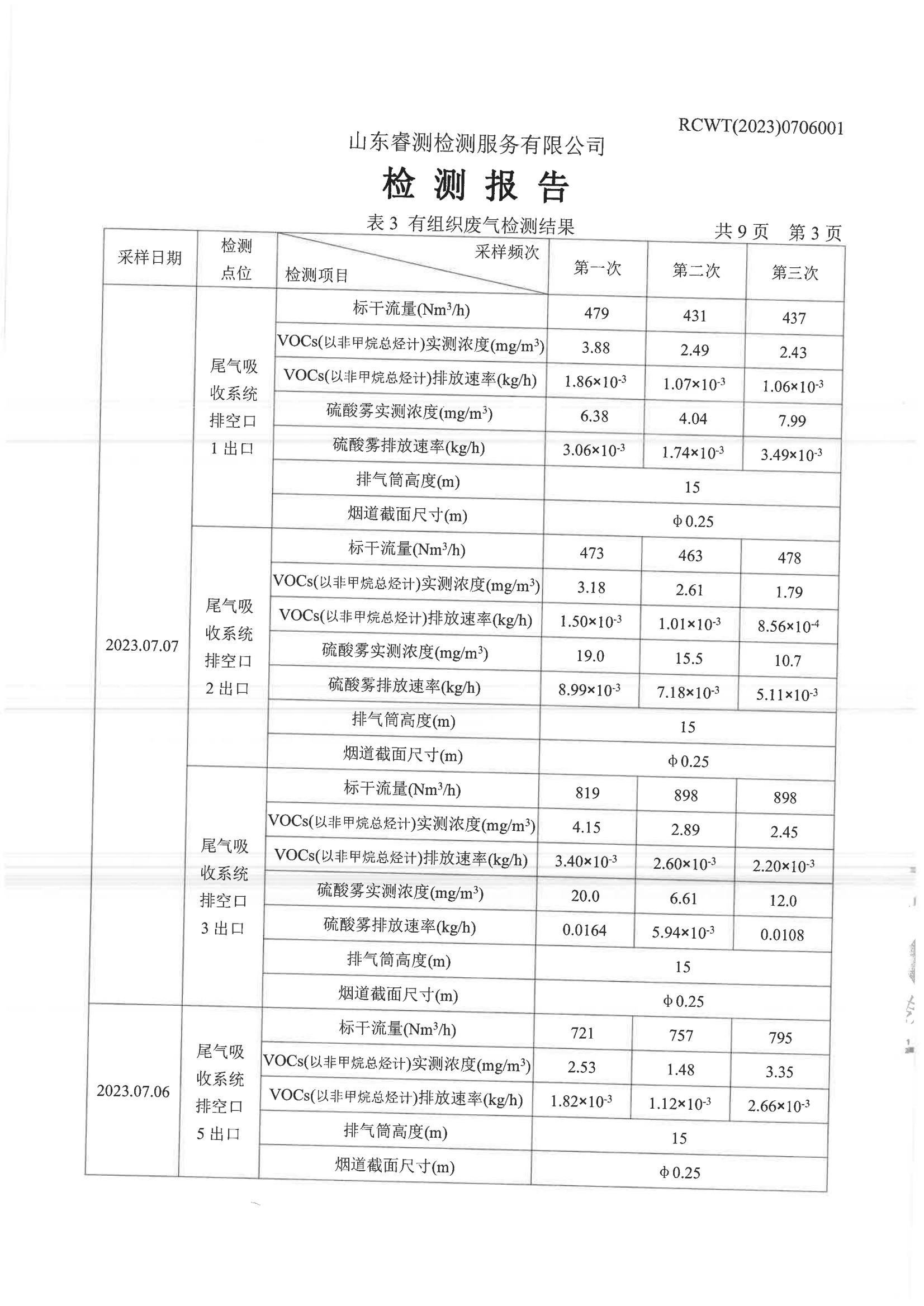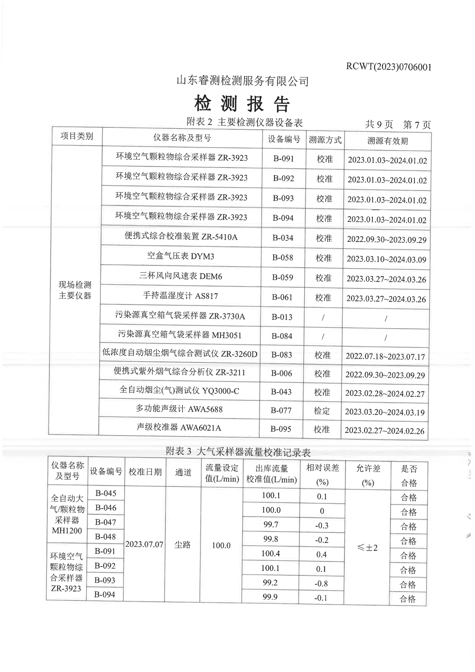 2023年第3季度(7月份)檢測報告