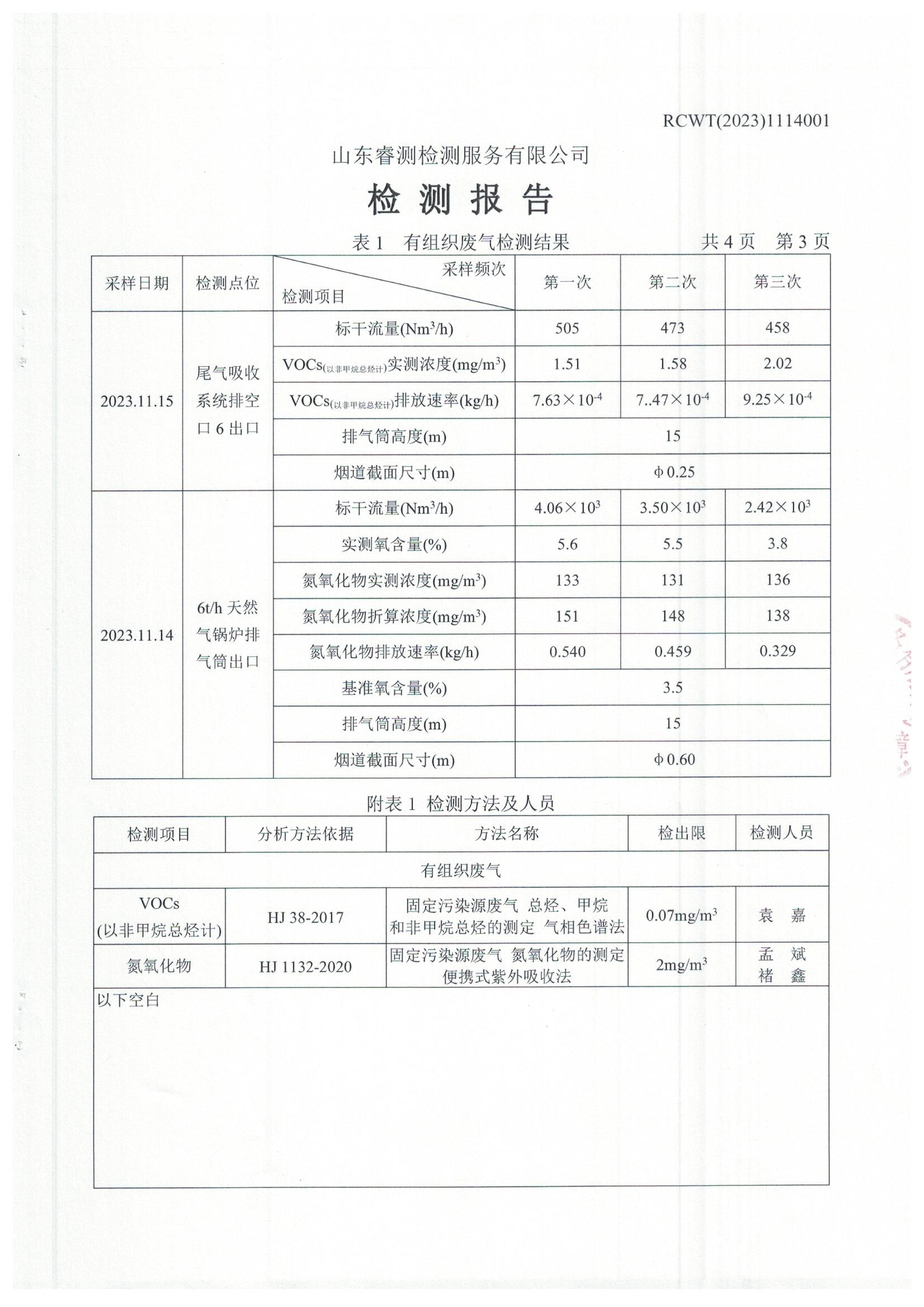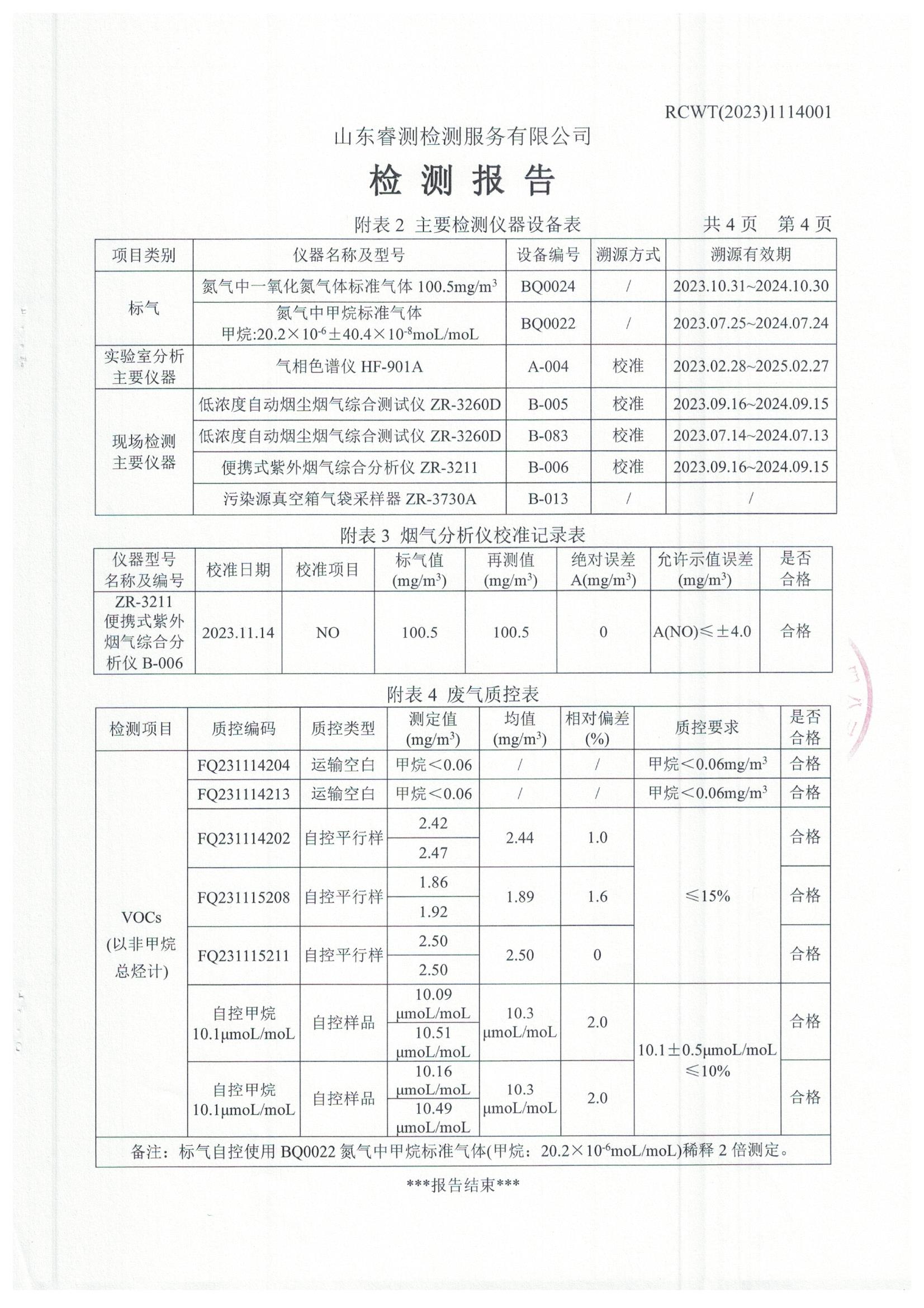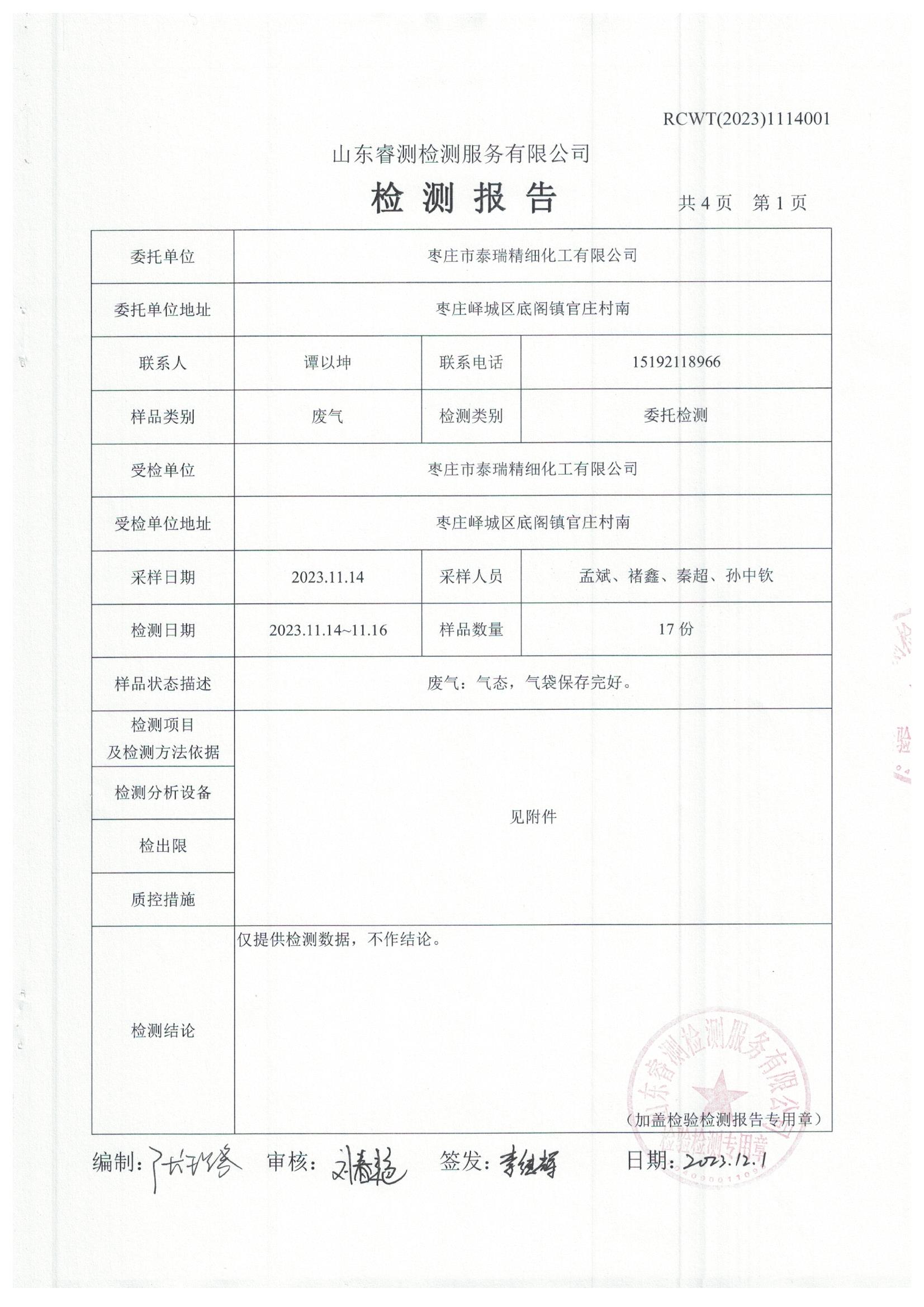 2023年第4季度(11月份)檢測報告