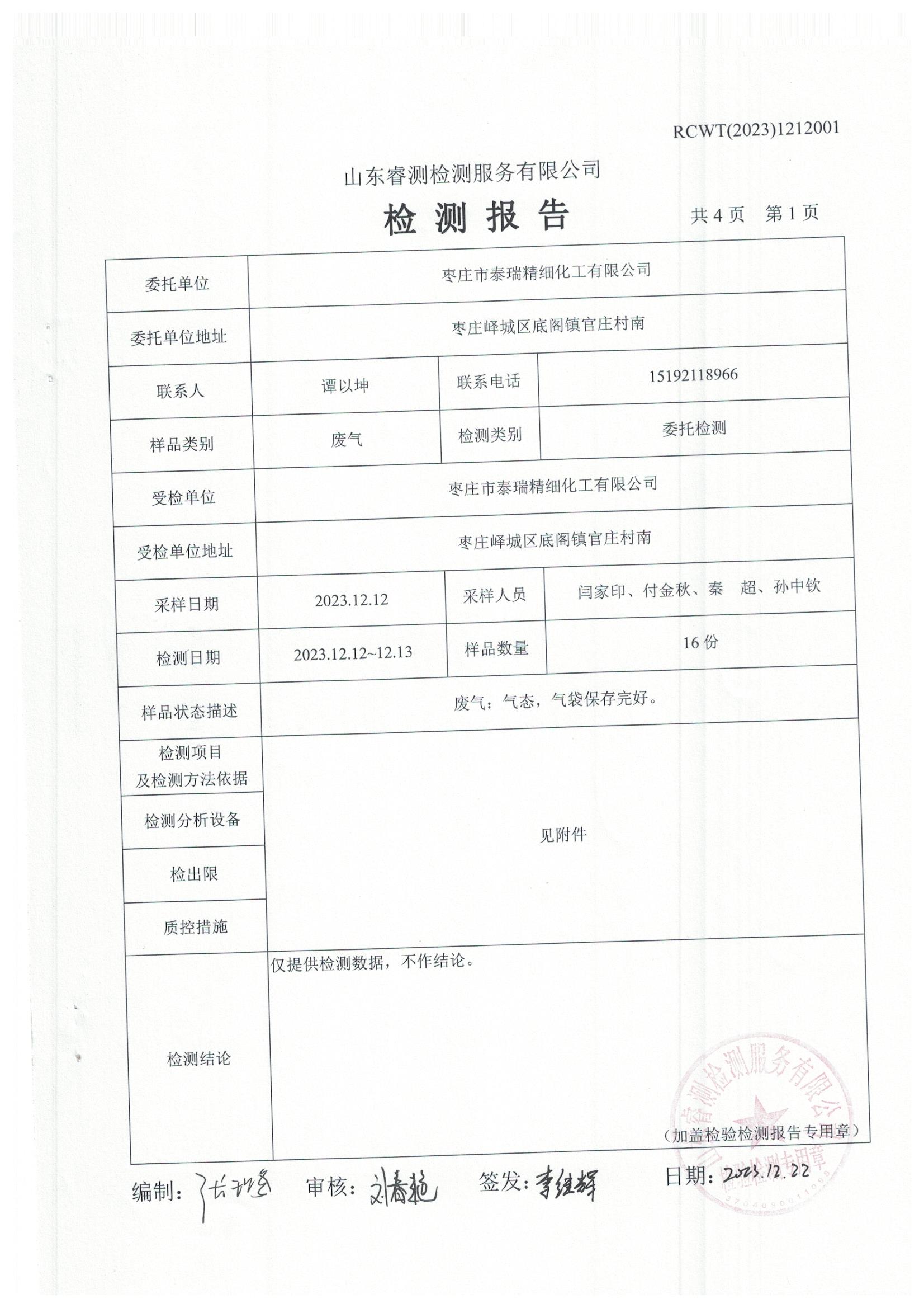 2023年第4季度(12月份)檢測(cè)報(bào)告